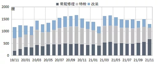 A :國(guó)際修船市場(chǎng)整體較為平穩(wěn)。隨著全球疫情得到一定程度的控制,航運(yùn)市場(chǎng)一路高歌,全球修船市場(chǎng)整體延續(xù)平穩(wěn)態(tài)勢(shì)。根據(jù)克拉克森數(shù)據(jù),1-11月,全球共修理16333艘,同比增加1.4%。常規(guī)修理和特檢塢修時(shí)間較短,對(duì)船東排期影響較小,訂單量均有所增長(zhǎng),常規(guī)修理和特檢訂單分別為5714艘和6831艘,同比分別增長(zhǎng)15.4%和1.5%。航運(yùn)市場(chǎng)火爆,船隊(duì)運(yùn)力緊張,運(yùn)價(jià)持續(xù)高位,船東主動(dòng)改裝意愿不強(qiáng),加上脫硫塔訂單量銳減等因素,改裝訂單有所減少,共改裝3788艘,同比減少14.5%。壓載水處理系統(tǒng)改裝量保持穩(wěn)定,共加裝3379艘,占改裝總量的89.2%,同比增加4.7%。脫硫塔加裝熱潮明顯消退,僅加裝237艘,占改裝總量的6.3%,同比大幅下降76.6%