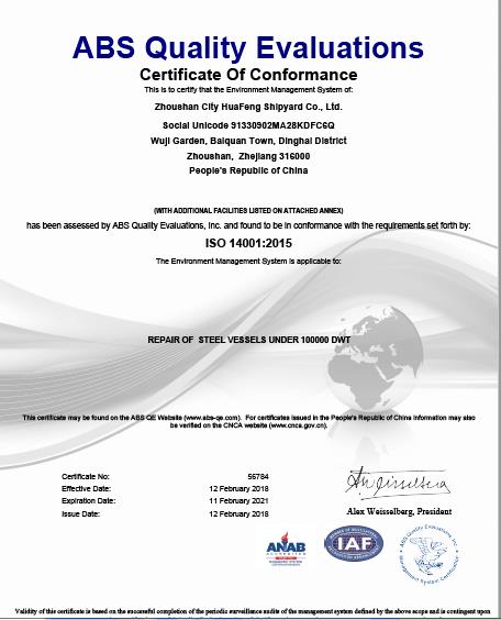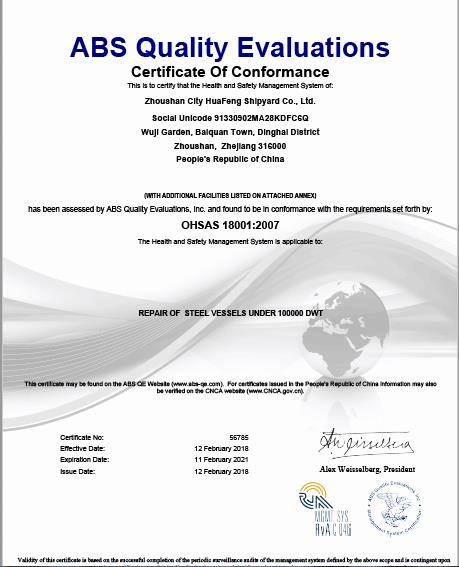 舟山市華豐船舶修造有限公司 我廠通過(guò)ABS體系認(rèn)證