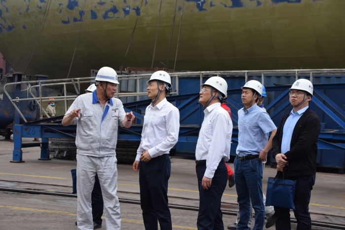 在隨后的座談交流中,鄔董事長(zhǎng)向陸秘書(shū)長(zhǎng)等重點(diǎn)介紹了公司的發(fā)展歷程及當(dāng)前正在實(shí)施推進(jìn)的重大項(xiàng)目,如數(shù)智化船廠的布局,以及為綠色低碳修船正在自主研發(fā)的設(shè)備設(shè)施等,同時(shí),也談及企業(yè)發(fā)展中遇到的瓶頸問(wèn)題希望得到相關(guān)的政策支持。